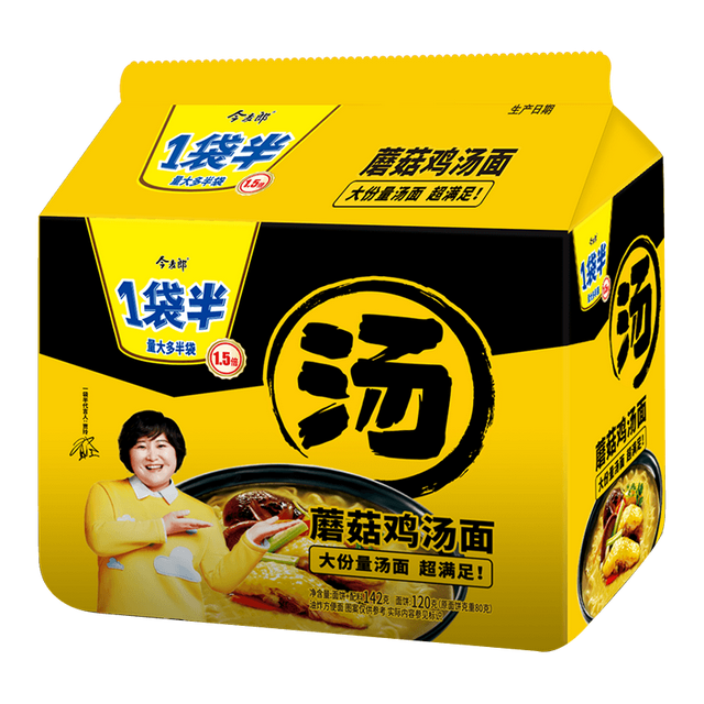 五、今麦郎蘑菇鸡汤面。除了量大实惠的特点外,“一袋半”和“一桶半”系列方便面在口感和品质上也延续了今麦郎公司一贯的高标准。面饼经过精心制作,呈现出劲道爽滑的口感,调料包则选用了优质的食材和独特的配方,为消费者带来了层次丰富的味觉体验。这一系列产品的推出,不仅解决了消费者一桶吃不饱的问题,更在口感和品质上为消费者带来了全新的享受。