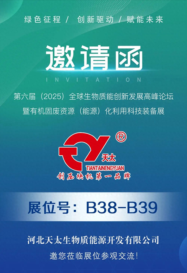 2025年4月10-11日,由中国产业发展促进会生物质能产业分会联合中国农业大学、国际能源署生物质能(IEA Bioenergy)中国组、中国能源研究会绿色低碳技术专业委员会主办的第六届(2025)全球生物质能创新发展高峰论坛暨有机固废资源(能源)化利用科技装备展即将再次盛大开幕。河北天太生物质能源开发有限公司已确认出席本次峰会和展览,届时将惊艳亮相。