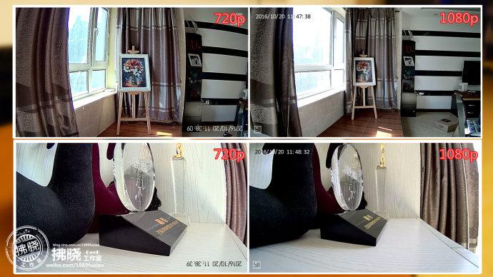 在常光下,两款机器的拍摄效果差异并不是特别的大。尤其在近距离拍摄中,几乎看不出来什么猫腻存在。但细心的人可以发现,1080P的云台在广角收录上要稍许比720P的大一些,同样的位置上拍摄可以拍到稍许更多一些的角度。而色还原上,720P的云台相对于1080P的机器要弱一些,显得稍许偏白,如果将细节过于放大来看,1080P的优势就会显得更明显一些。