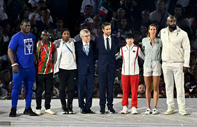 闭幕式高光:亚洲之光,闪耀巴黎最让人惊喜的,莫过于巴赫亲自邀请孙颖莎作为闭幕式的亚洲代表。