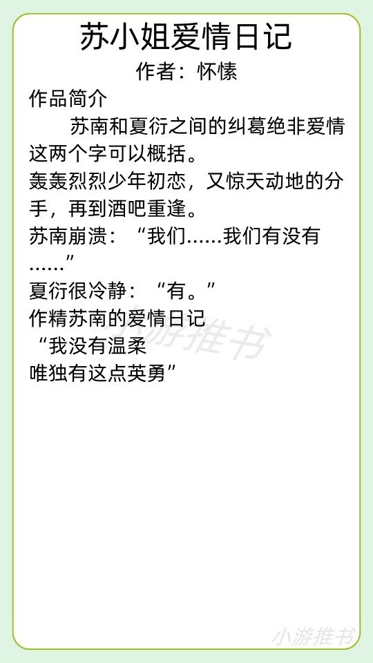 20.《苏小姐爱情日记》 作者:怀愫 //字数:30w
