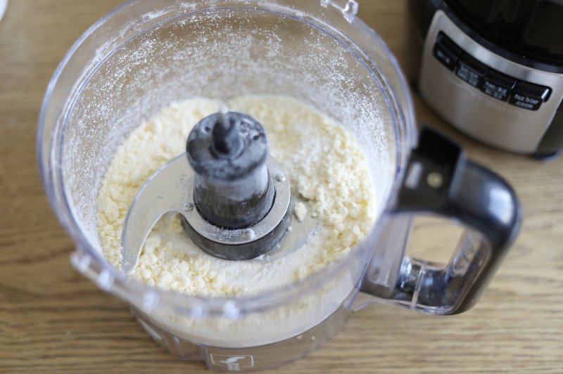 1. 制作酥皮:黄油适当软化后和糖粉,低粉一起放进料理器打散。酥皮:黄油40克,糖粉25克,低粉50克。