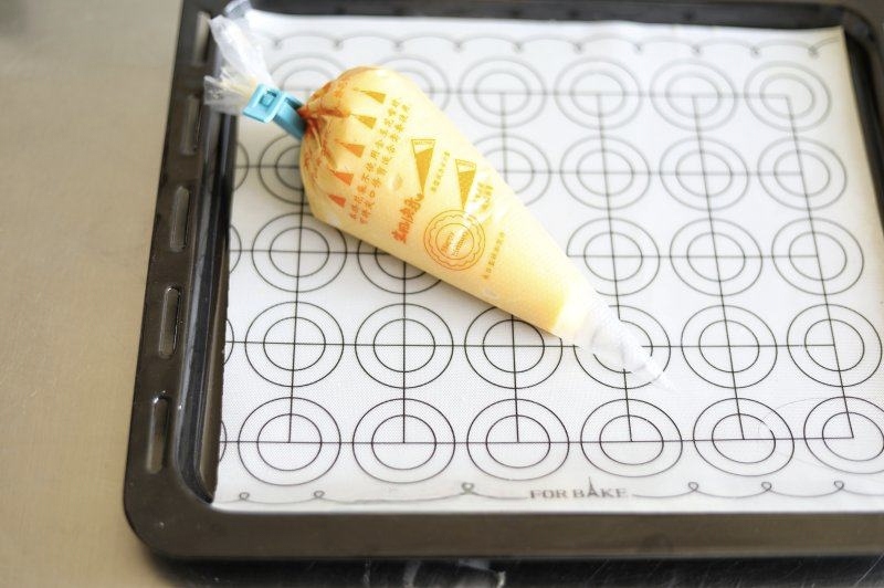 8. 把泡芙面糊装进裱花袋,烤盘垫上油纸或者硅胶垫。