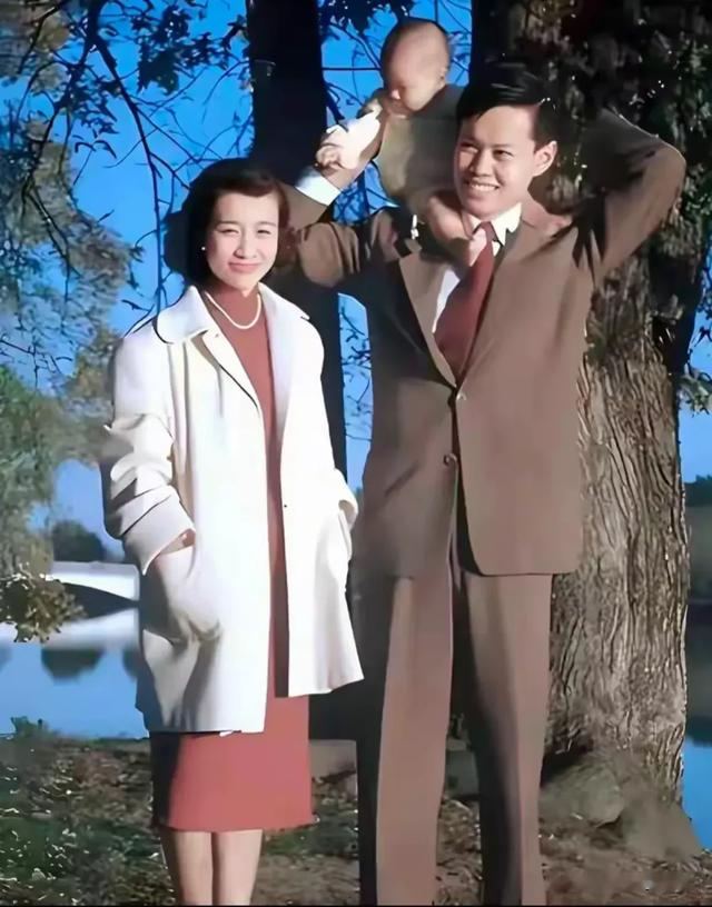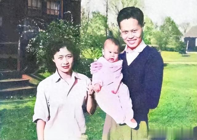 这是杨振宁一家三口在美国拍的一张无比幸福的全家福,图片中杨振宁抱着儿子,而妻子杜致礼则站在一边,一家三口的脸上都洋溢着开心的笑容。
