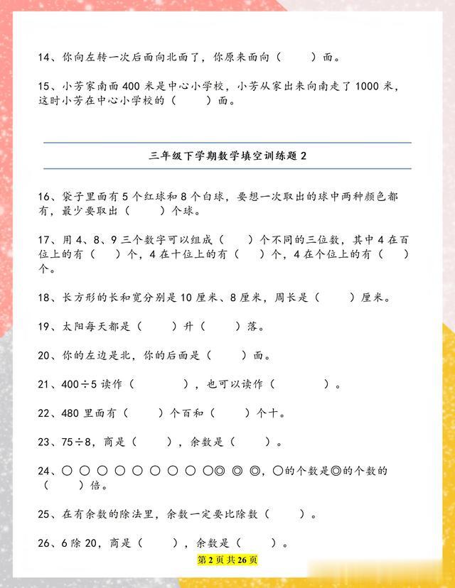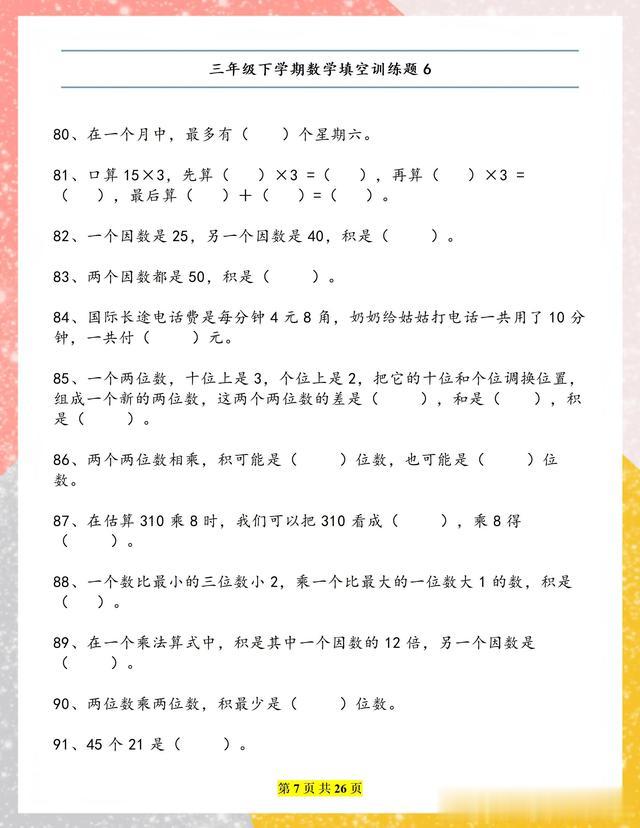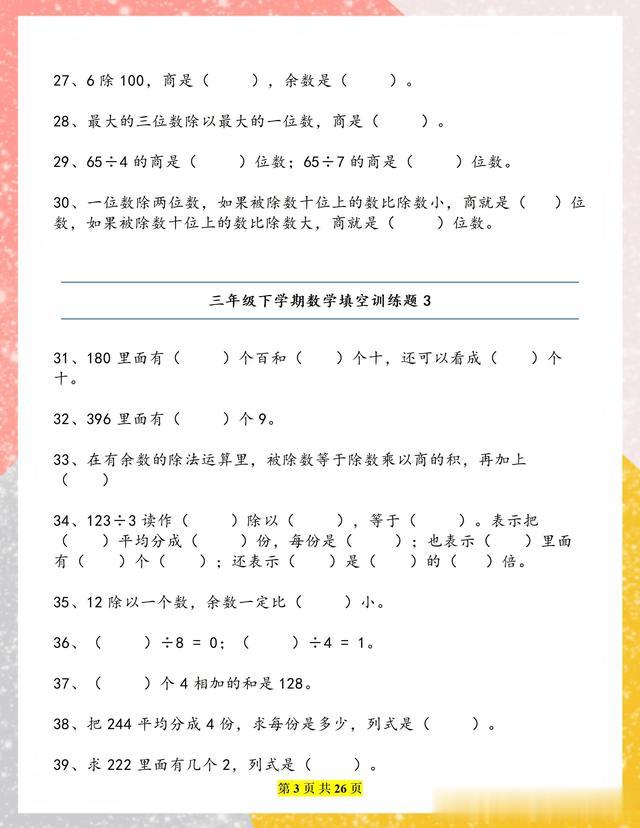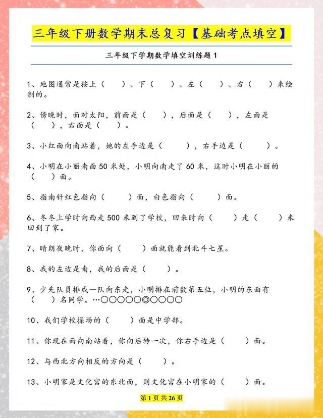 班主任梳理:三年级下册数学期末知识点考点填空,搞懂基础不丢分
