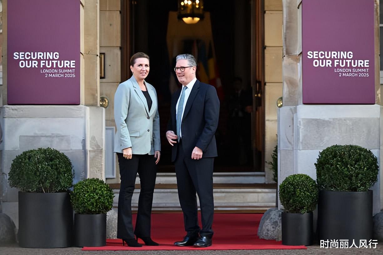 丹麦首相穿上高跟鞋,个子都能赶得上斯塔默了,梅特的这身黑蓝配,在重要的正式场合,也是不容易出错的色系搭配。