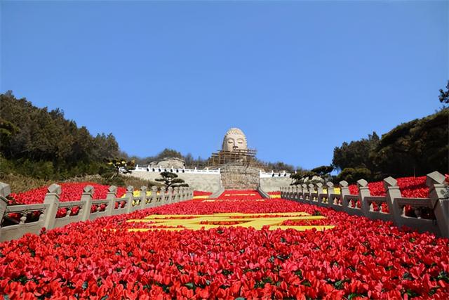 2007年7月,苗新田开始做设计。到了2007年年底,这个高12米、宽7米多、重80多吨的佛头终于完美登场。2008年1月,佛头安放完毕,10月7日,完成修复的蒙山大佛景区向公众开放。