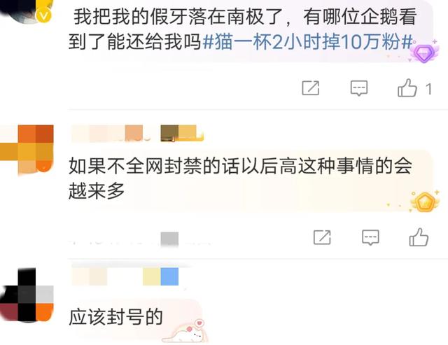 目前“猫一杯”的账号已经开始大量掉粉,仅仅2小时就掉了10万,但是账号依旧还在,只能说对她本人进行了处罚,账号还保留着。