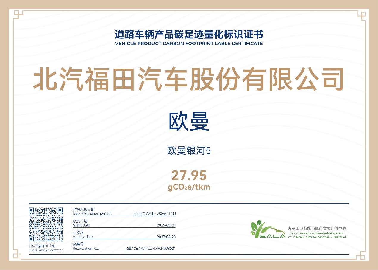 福田欧曼银河5、欧曼星翼碳足迹量化标识