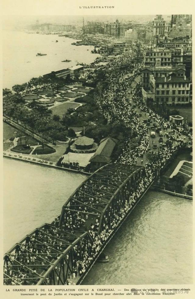 法国画刊报导上海难民由外白渡桥涌入公共租界
