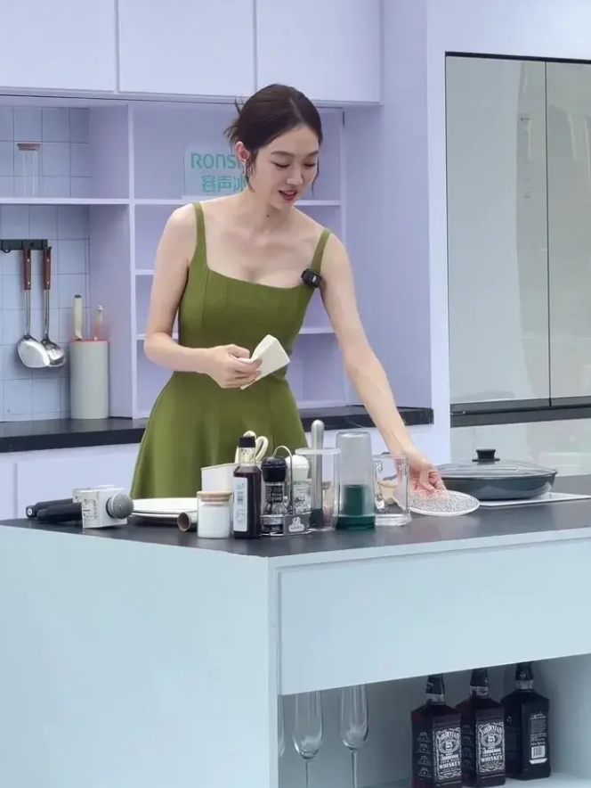 在姜妍的手中,她正擦拭着盘子,这一动作与“美女厨娘”的形象可谓是非常契合。