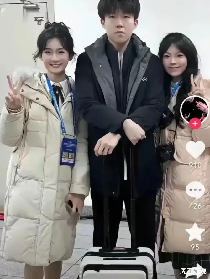 然而,王楚钦的“绅士风度”可不止体现在赛场上。近日,有网友曝光了一组王楚钦与两位美女偶遇并合影的照片。照片中,王楚钦与两位美女并肩站立,但他的动作却显得有些僵硬和拘谨。为了避免与美女们过于亲密的接触,王楚钦干脆将手搭在了行李箱的栏杆上,这一幕不禁让人忍俊不禁。