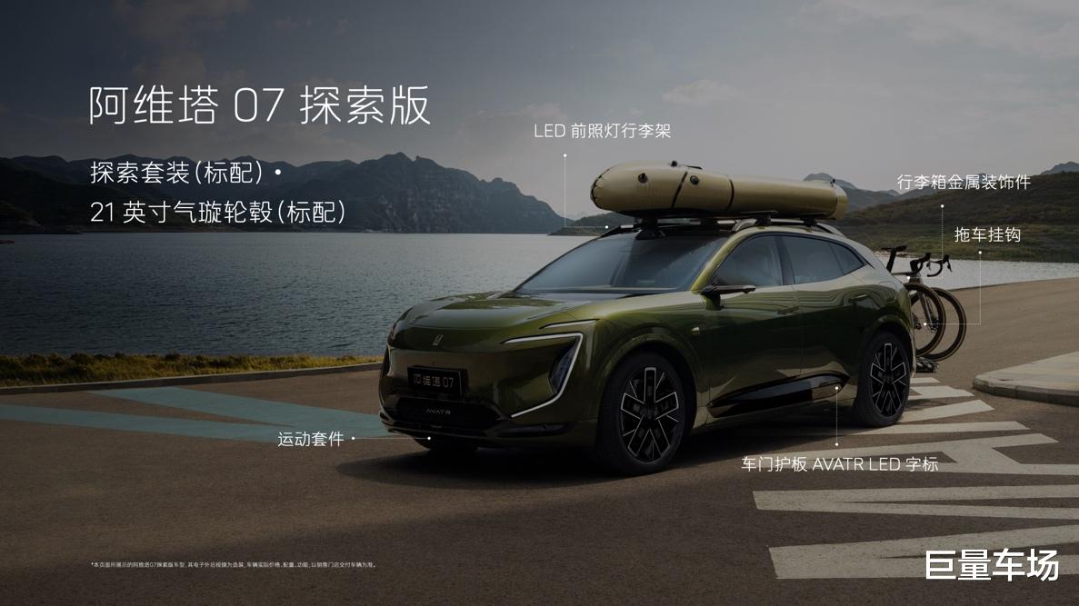 为了满足更多用户对出行边界的探索,阿维塔科技宣布,阿维塔07的Max 和 Ultra版本用户均可选装探索套装,Pro+和Max用户可选装21英寸气璇轮毂,以行业标杆姿态引领场景化的出行生态。