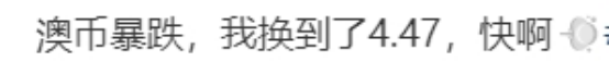 澳元兑人民币也早已跌破4.5,目前跌至4.4441。