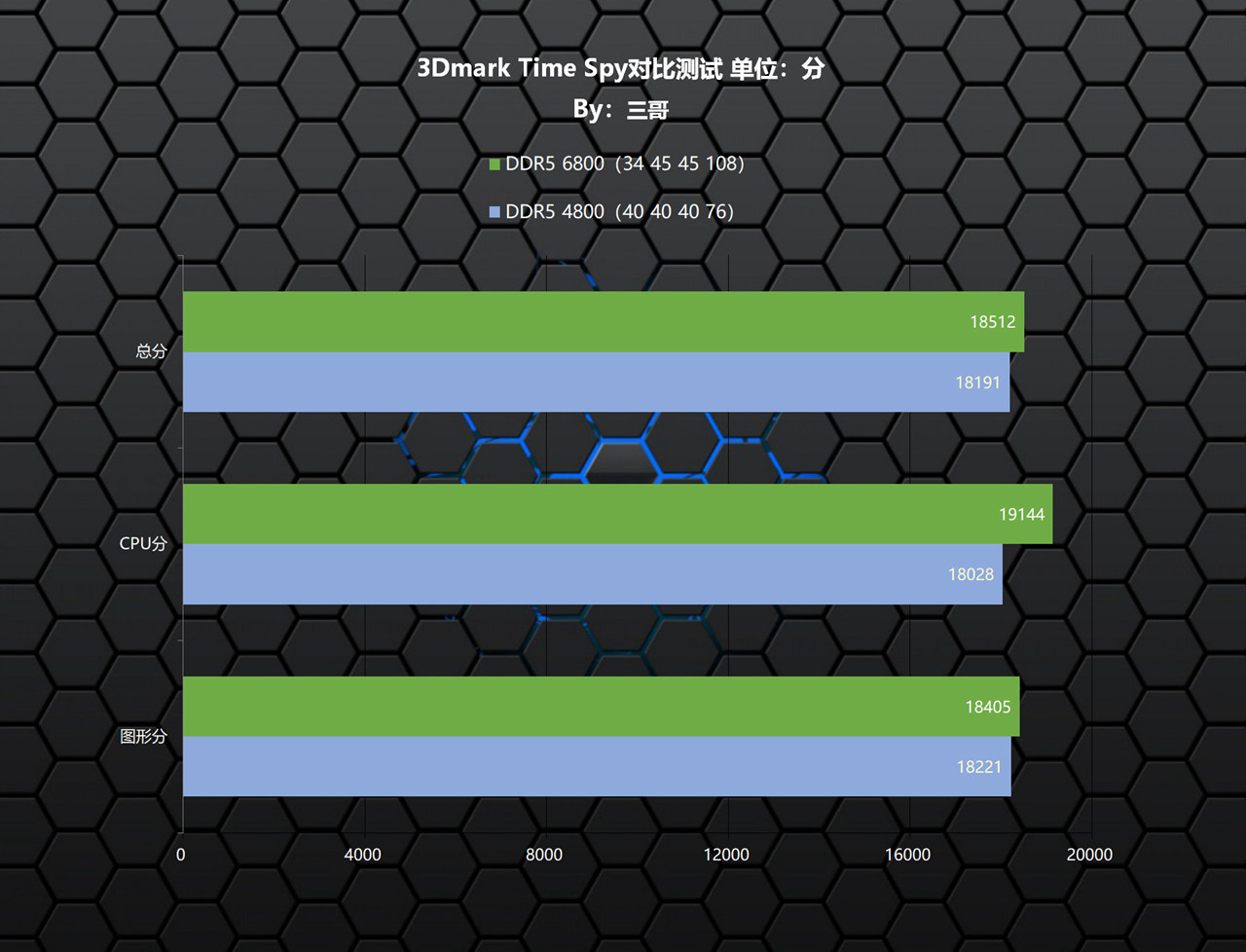在该测试中,开启XMP相较默频,CPU分有较大幅度的领先,总分和图形分有小幅度领先。