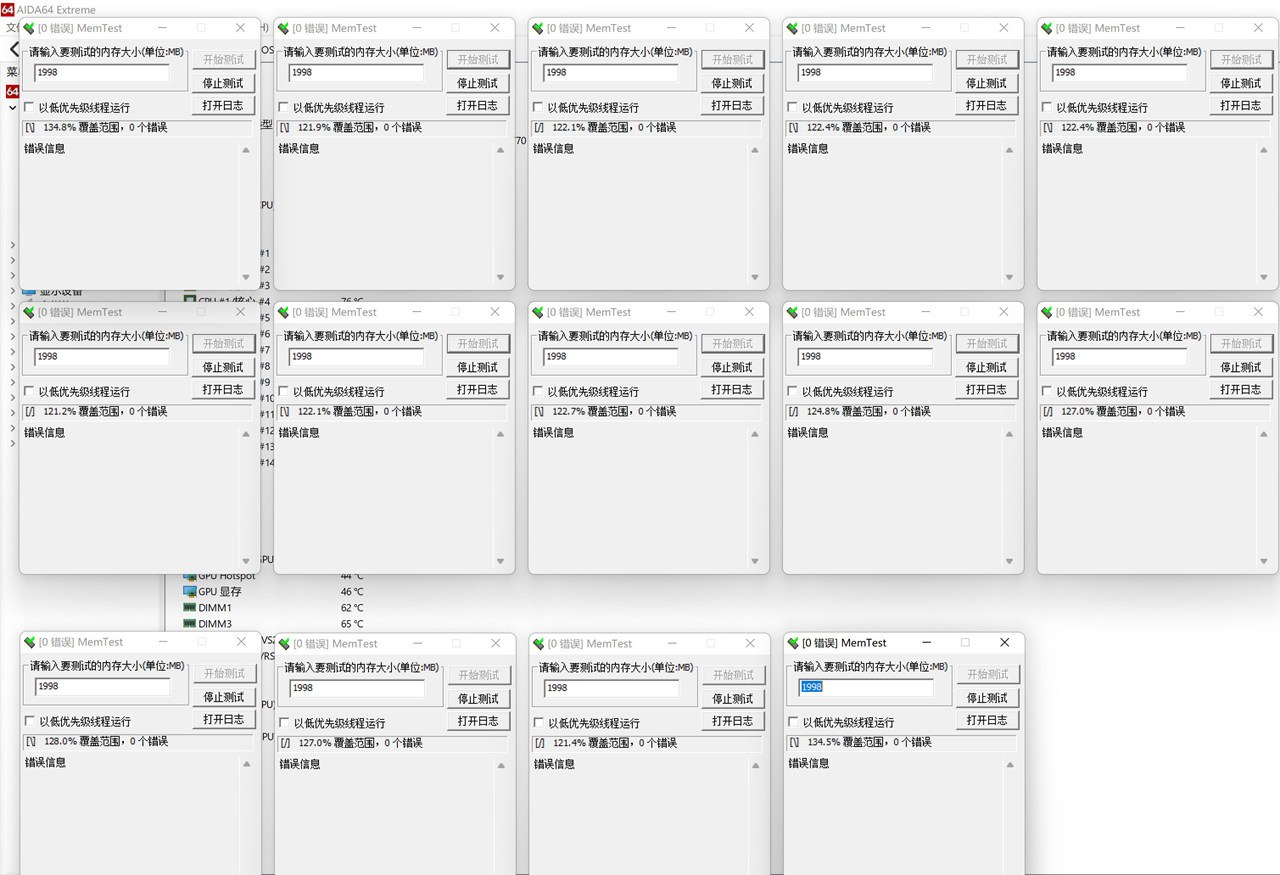稳定性测试,这对内存在开启XMP后,能够顺利通过100%覆盖率的MemTest测试,同时温度也保持在较低的60℃出头。