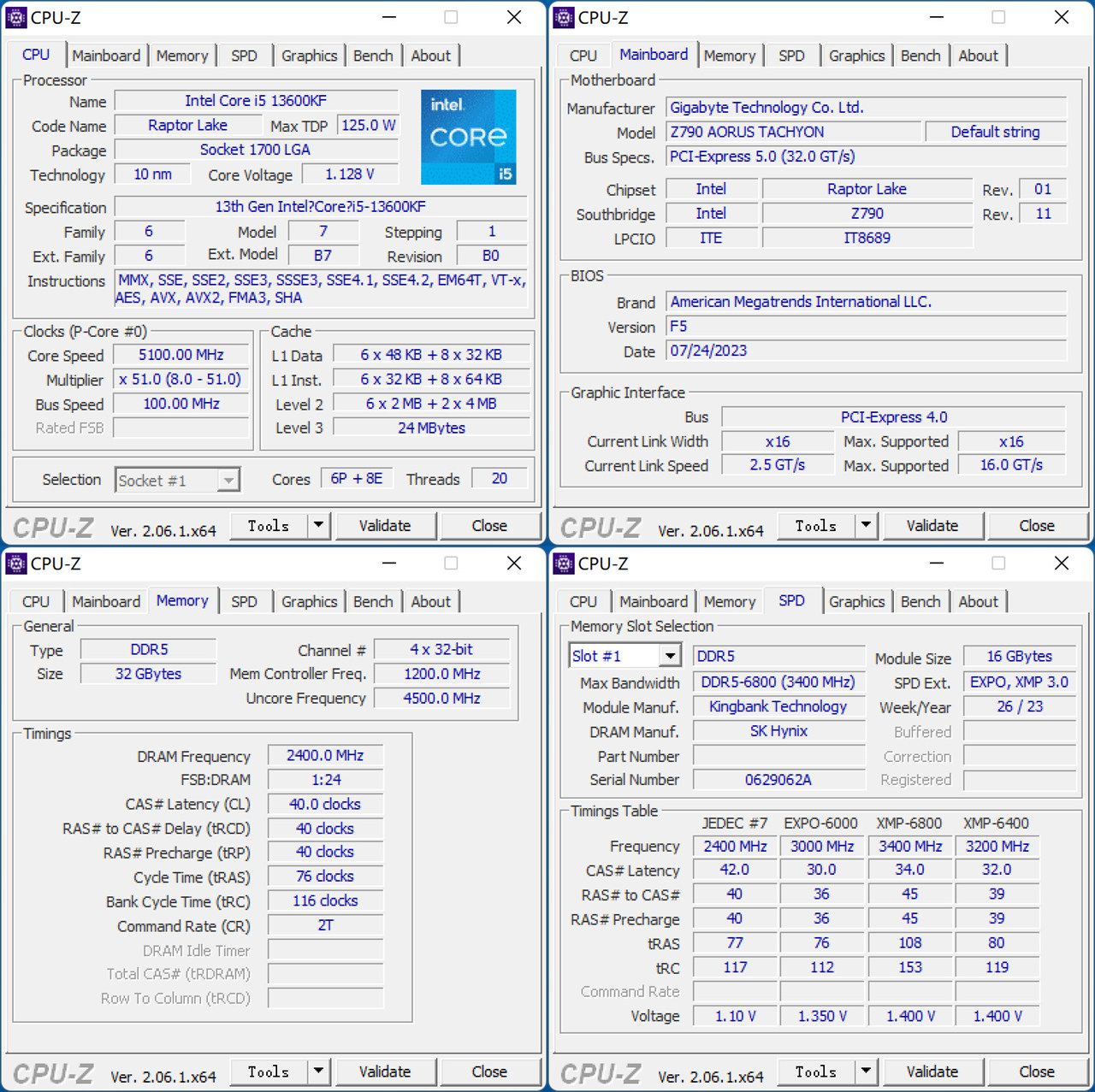 在CPU-Z测试中,开启XMP相较默频,单核、多核性能均有小幅度领先。