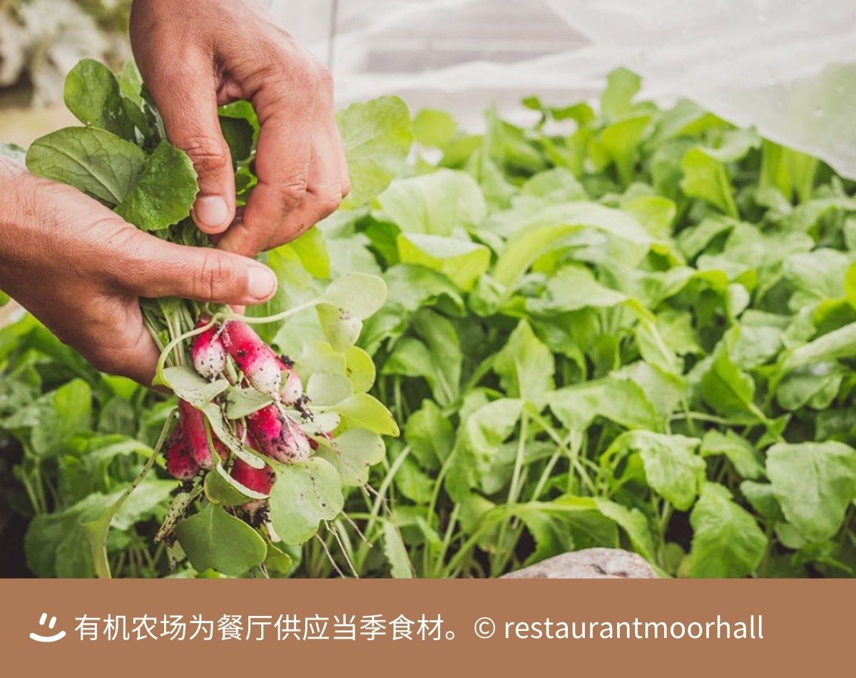 作为获得米其林绿星的餐厅,Moor Hall 一直致力于打造可持续的食物系统。餐厅拥有自己的生态农场,在五英亩的土地上种植尽可能多的作物,蔬菜、香草、可食用花卉均自给自足。全年,客人可以吃到花园里的各种新鲜农产品,食材从田间到餐桌的运输距离仅数百米,碳足迹近乎为零。