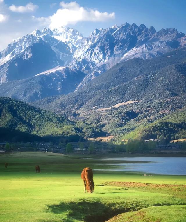 漫步在玉龙雪山脚下的绿野仙踪--云杉坪,看蓝月谷碧潭映峰,宛如一块嵌入人间的翠玉