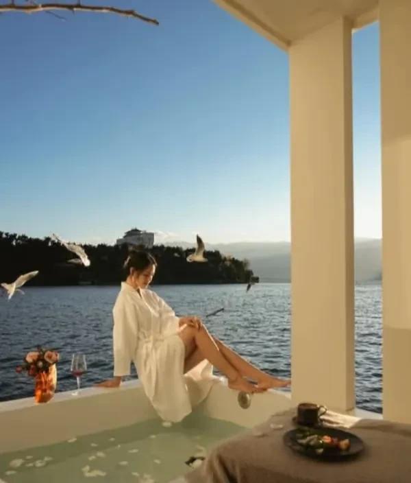 抵达泸沽湖风景区,在泸沽湖畔品尝湖景下午茶