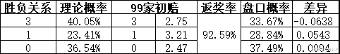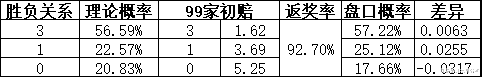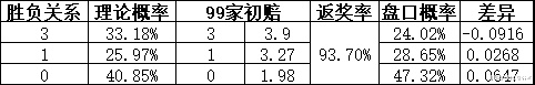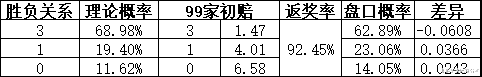 最终,经过模型推算得出的胜平负概率以及根据机构开盘数据计算的胜平负概率见下表: