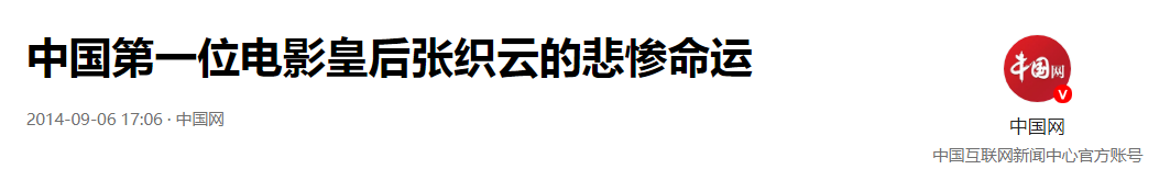 中国网:2014-09-06:中国第一位电影皇后张织云的悲惨命运