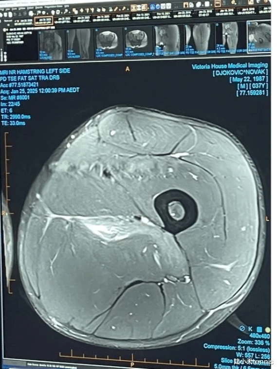 此外,我们再来关注在澳网受伤的德约科维奇,前不久,德约科维奇在个人社交媒体上公布了自己左大腿MRI磁共振扫描检查结果图片,并配文:我想把这个留给所有运动损伤“专家”。