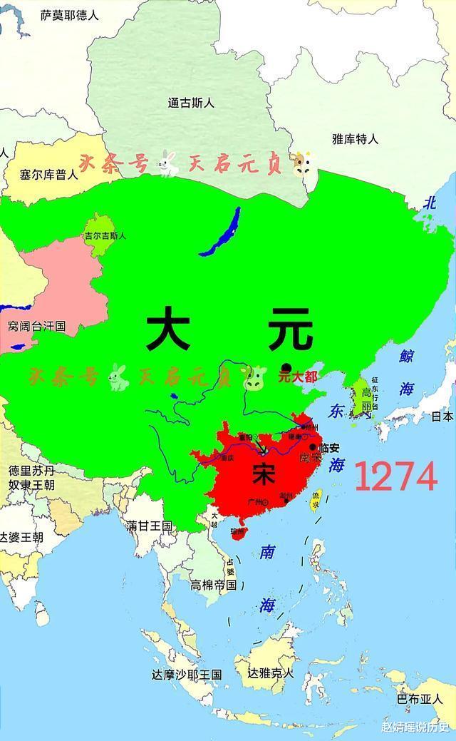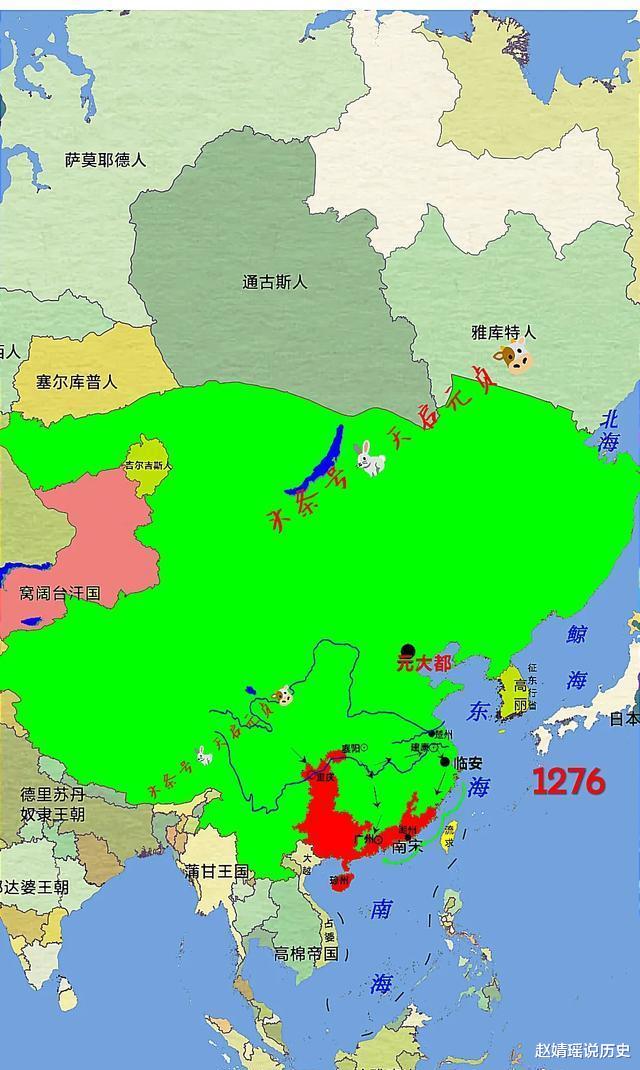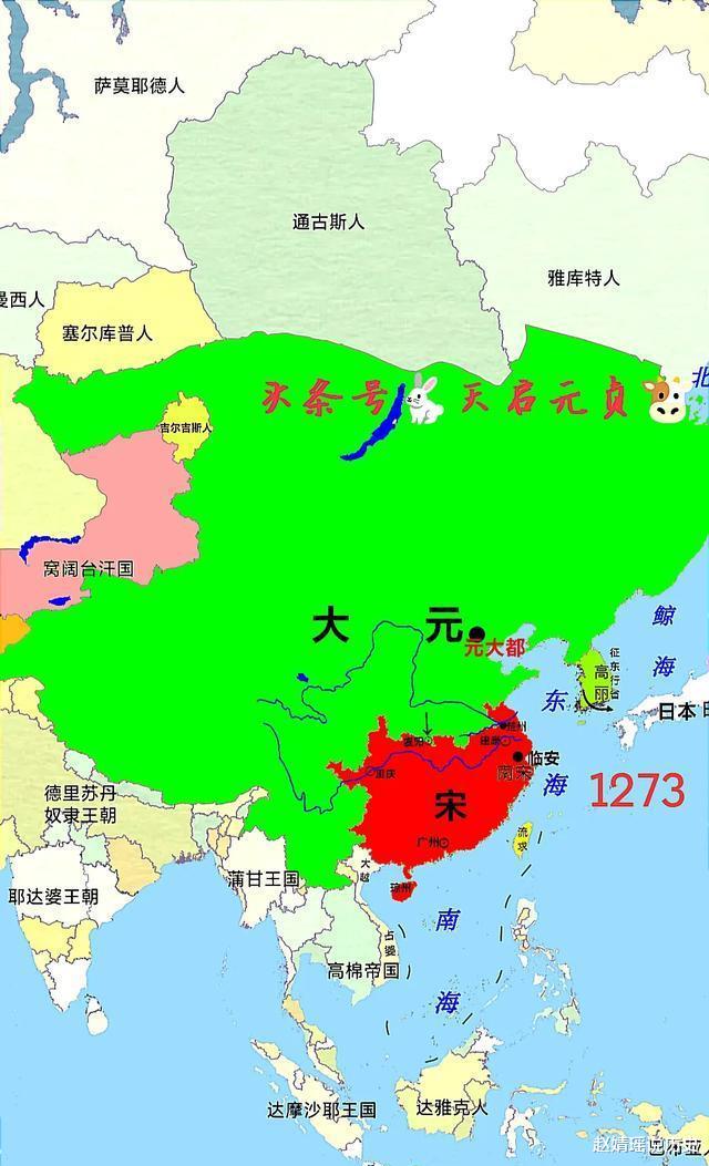 成为中原皇帝后,统一中国势在必行。当时,全国大部已归大元,仅南宋尚存。
