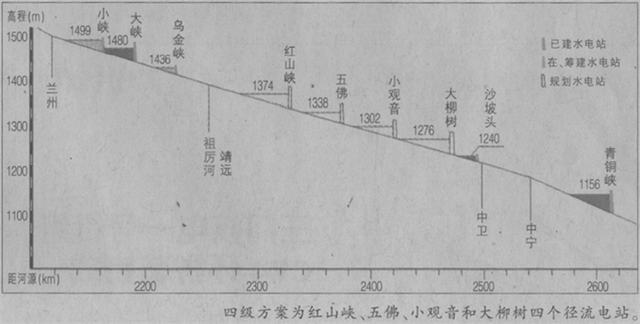 甘肃省一开始打算在小观音那里修一个比较大的水坝(二级高坝),但后来又提出了一个新方案,打算在小观音、五佛、红山峡、大柳树这四个地方分别修建高度较低的水坝(四级低坝)。