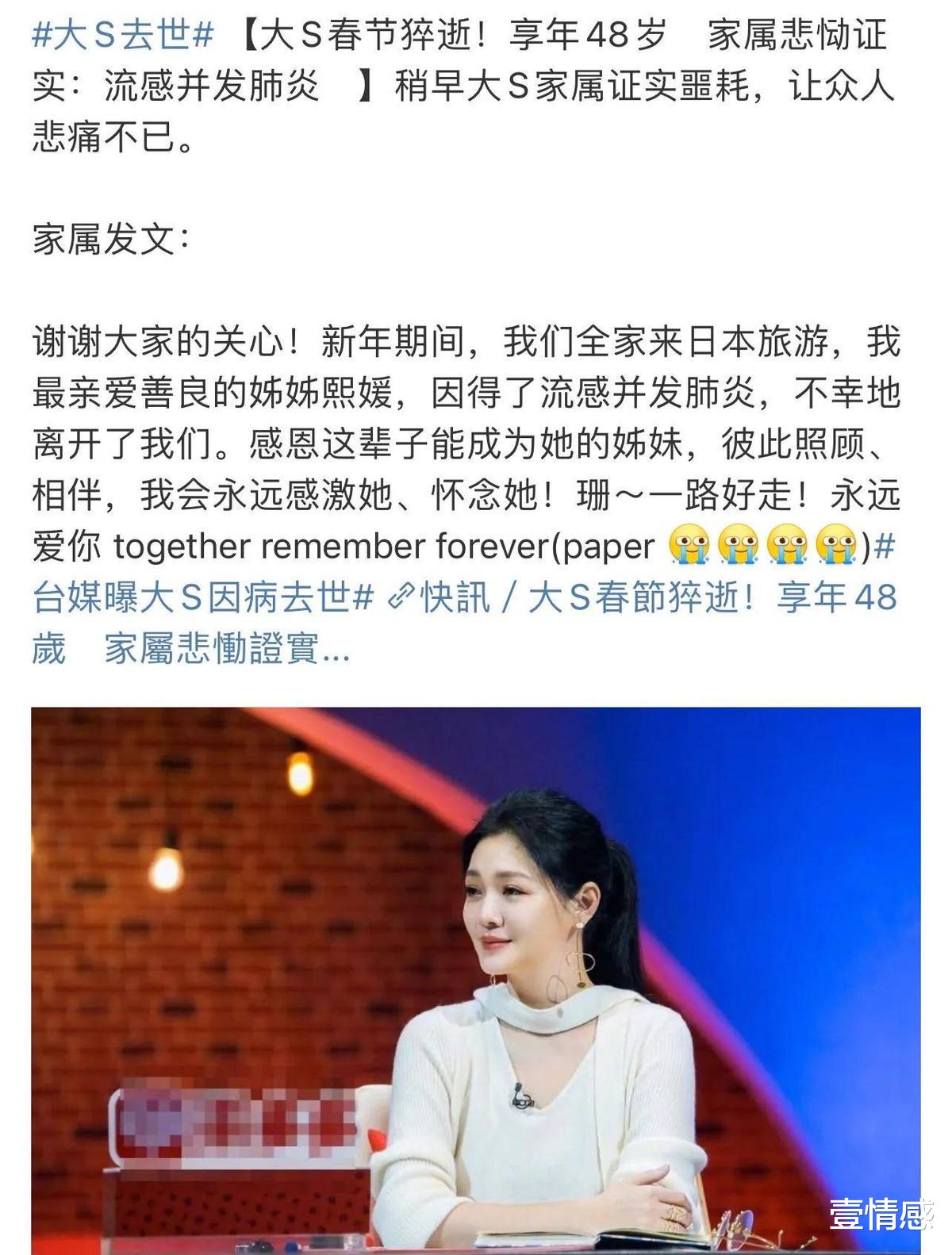 大S的骤然离世,迅速在网络上引起了轩然大波。