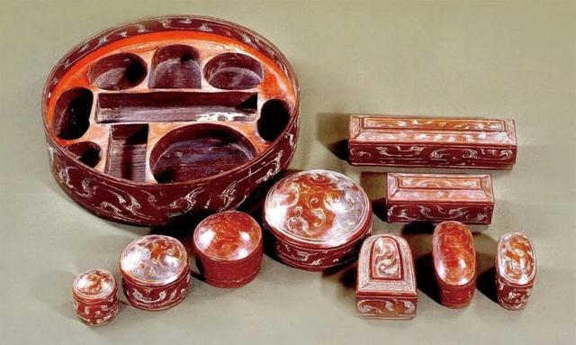 其中螺钿镶嵌的铜镜旁,放着装有铅粉与朱砂的瓷盒,盒底残留物经检测含大量珍珠粉。