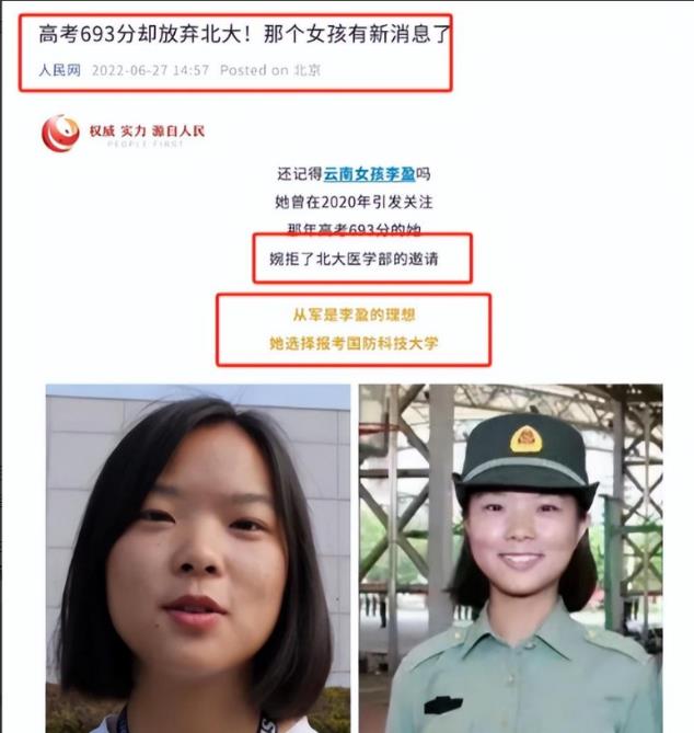 国防科技大学也注意到了这一现象。在2020年的招生宣传中,学校特别提到了李盈的故事,称赞她的坚持和毅力。