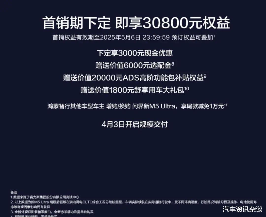 22.98万起,标配华为高阶智驾,纯电续航超600公里!2025年3月20日,问界M5 Ultra正式上市,以“降价增配”的颠覆性策略杀入20万级新能源SUV战场。这款车究竟是“真香”还是“噱头”?我们通过一周深度试驾,揭开它的真实面纱。