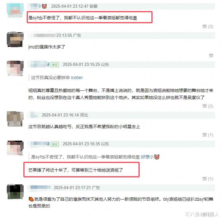 水果台快好好做回“浪姐”的初心吧,本就是想给更多“超龄”姐姐提供展示魅力的舞台,结果却成了恶剪辑、炒话题的重灾区,要不咱就换名也行,别叫“乘风破浪”了,就改名“兴风作浪”挺符合。
