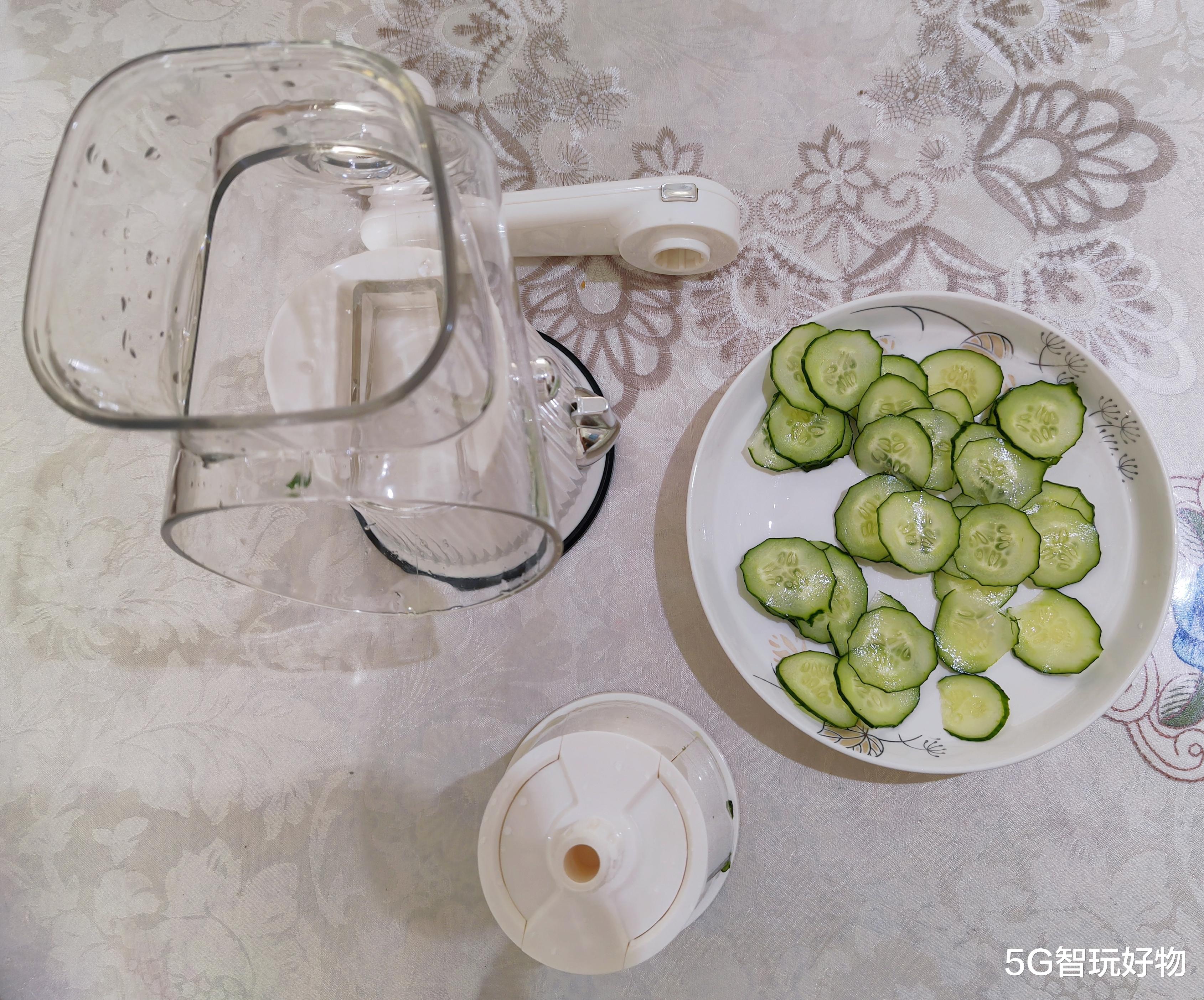 (5) 放入食材转动把手开始切菜;