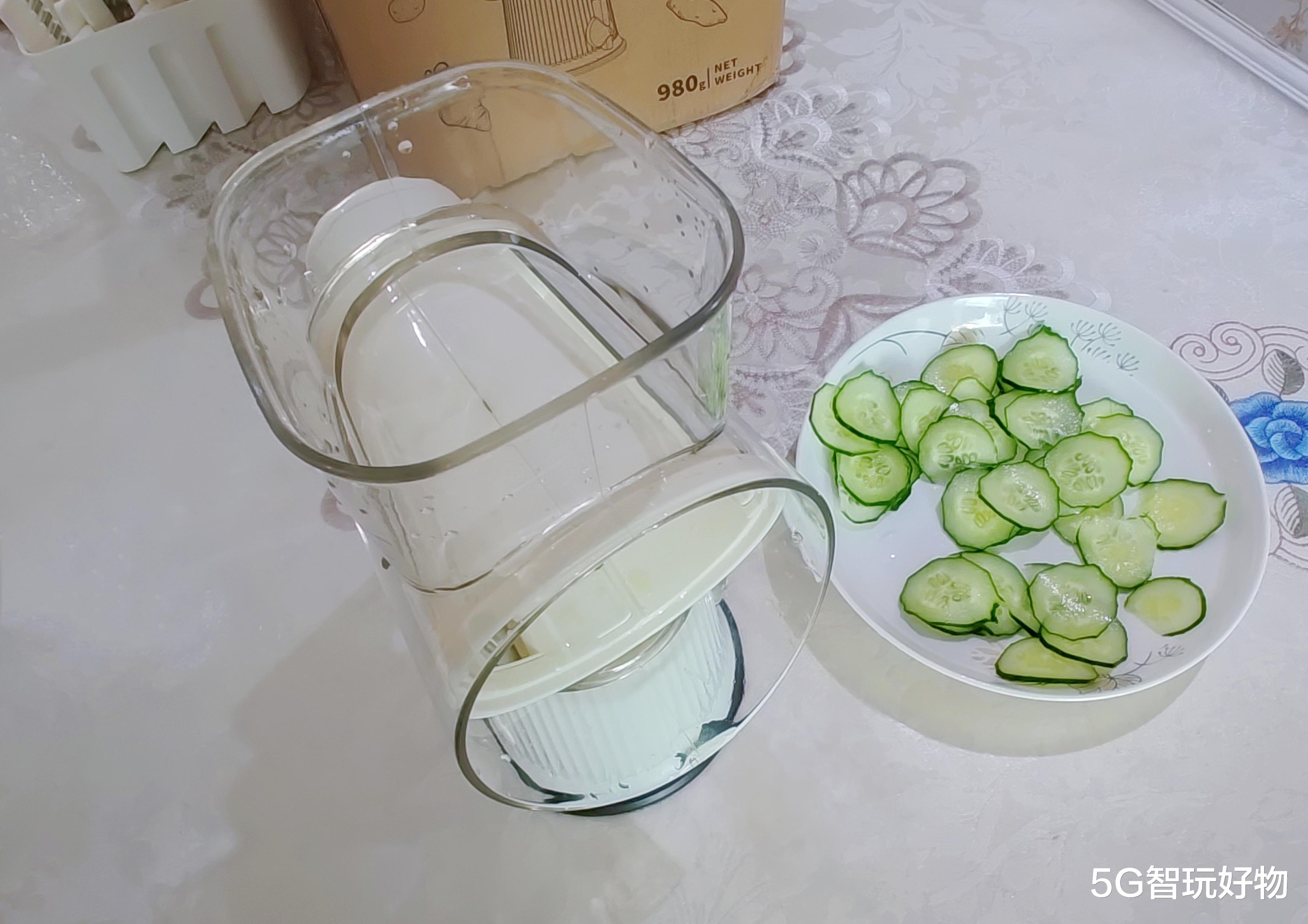 这款切菜器的刀片还是很锋利的,切起菜来没有一点儿含糊,切出来的菜片和菜丝都比较的均匀,当然也有点受限于个人技术,如果进菜不及时,也可能会有厚薄有差距的薄片。。
