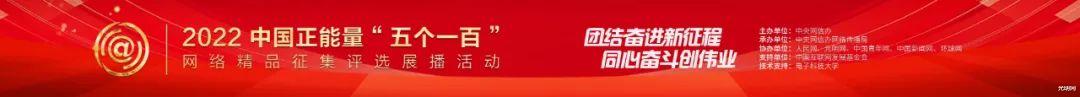 2022中国正能量“五个一百”网络精品征集评选展播活动由中央网信办网络传播局承办,人民网、光明网、中国青年网、中国新闻网、环球网协办,中国互联网发展基金会和电子科技大学提供支持。