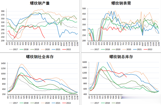 今天周四,照常发布钢材的产量库存数据,虽然产量继续下降,库存延续去化,但环比来看是低于预期的。这个可以理解,在下跌行情下,需求不好,表观需求自然不会好。按目前的产需水平,10月份之前钢材大概率是无法进行去库的,库存始终会对价格构成压力。