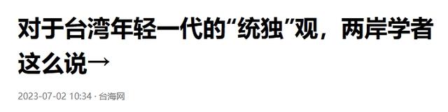 台海网 2023-07-02 10:34 《对于台湾年轻一代的“统独”观,两岸学者这么说》