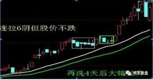 4根小阴线基本保持在同一平台小阴线,也形成串阴洗盘的图形形态,之后几个交易日涨幅达到16%。