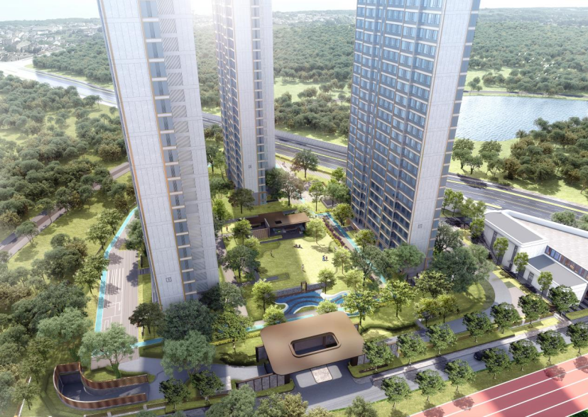 而在产品方面,受制于地块面积,只规划了3栋高层,有公建化立面、3.1米层高、高约4.6米,宽约37米的酒店式礼仪归家大门、3000㎡多功能中央大花园等设计。