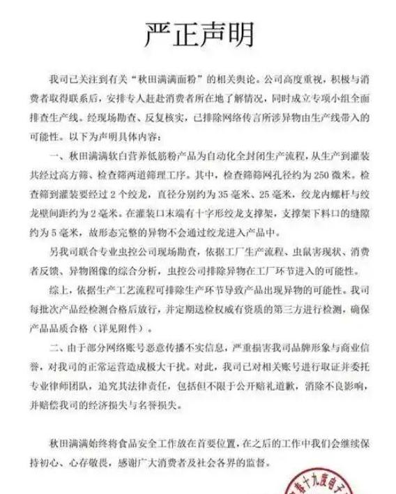 品牌方表示自己的产品通过全自动化和全封闭的生产流程,这种工艺几乎不可能让固态异物进入产品。