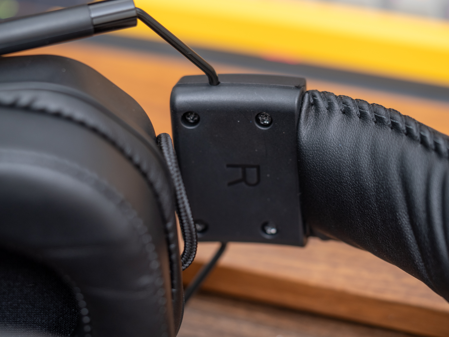 耳机两侧有无极伸缩调节长度,阻尼合适,可以适配不同的头型,上面还有R/L的标志方便区分左右。