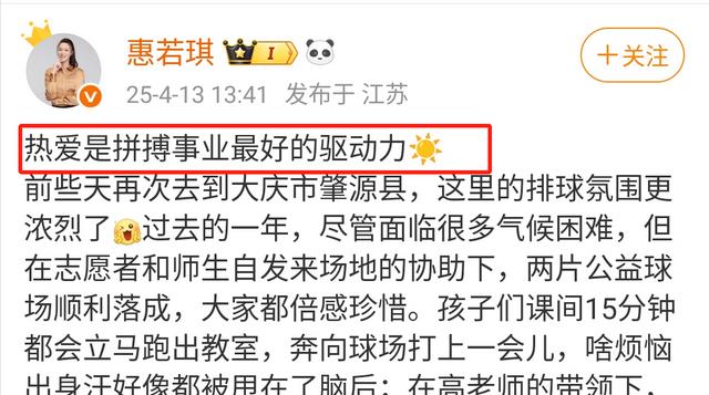 在赖亚文采访视频公开后,前女排队长惠若琪在社交平台上发出的一番话和视频完美呼应了。