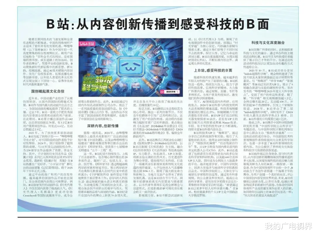 随着互联网技术的飞速发展和全球化进程的不断推进,中国的网络视听产业迎来了前所未有的发展机遇。哔哩哔哩(以下简称B站)作为中国年轻一代高度聚集的综合性视频社区,被用户亲切地称为“百科全书式的网站、没有围墙的图书馆、成长道路上的加油站、创作者的舞台”。