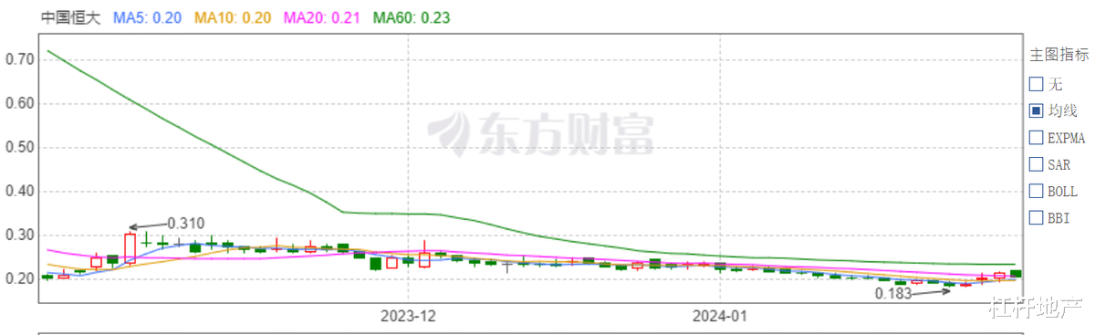 截至2024年1月26日港股收盘,中国恒大每股价格为0.206港元,当日跌幅4.63%。