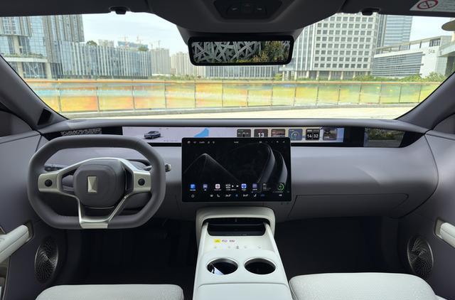 进入车内,阿维塔06同样给人眼前一亮的感觉。车内配备15.4英寸悬浮式中控大屏和35.4英寸4K一体式远端屏。这种设计不仅在视觉上带来了震撼,更重要的是其操作的便捷性。用户得以通过大尺寸的屏幕进行更为直观的操作,华为鸿蒙座舱的加入更是提升了车内科技感和智能化水平。而如果消费者选择电子后视镜,车两侧的显示屏也将为驾驶者提供额外的视野保障。虽然阿维塔的椭圆方向盘设计引发了消费者的争议,但结合操作的便捷性和屏幕的显示效果,整体体验还是相当不错的。