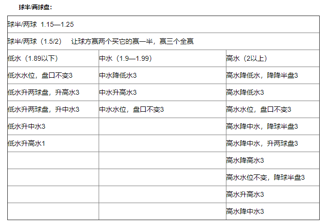 (5)半球低水升盘至半一后水位又调整到低水,则盘口过热,主队不胜。