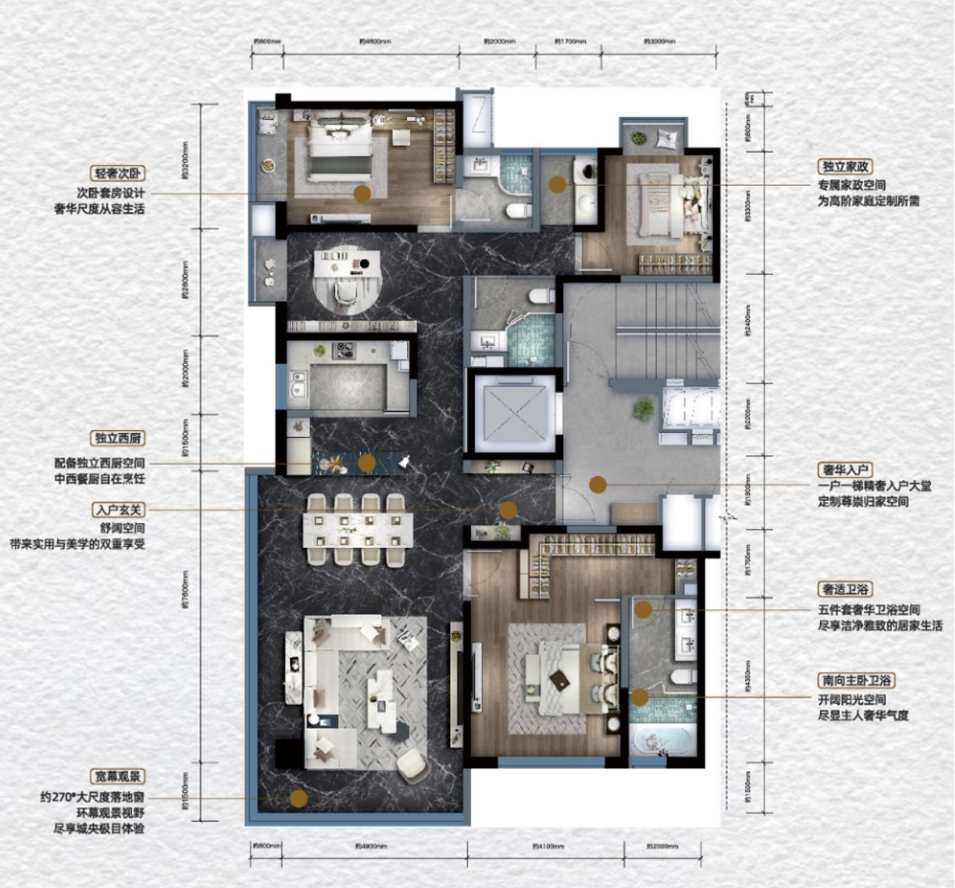 看户型图就能感受到城市级大平层才有的尺度规划。