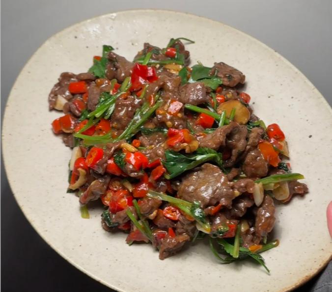 这道香菜牛肉,色香味俱全,牛肉鲜嫩,香菜清香,微辣的口感更是让人回味无穷。无论是搭配米饭还是面条,都是一道非常下饭的菜肴。